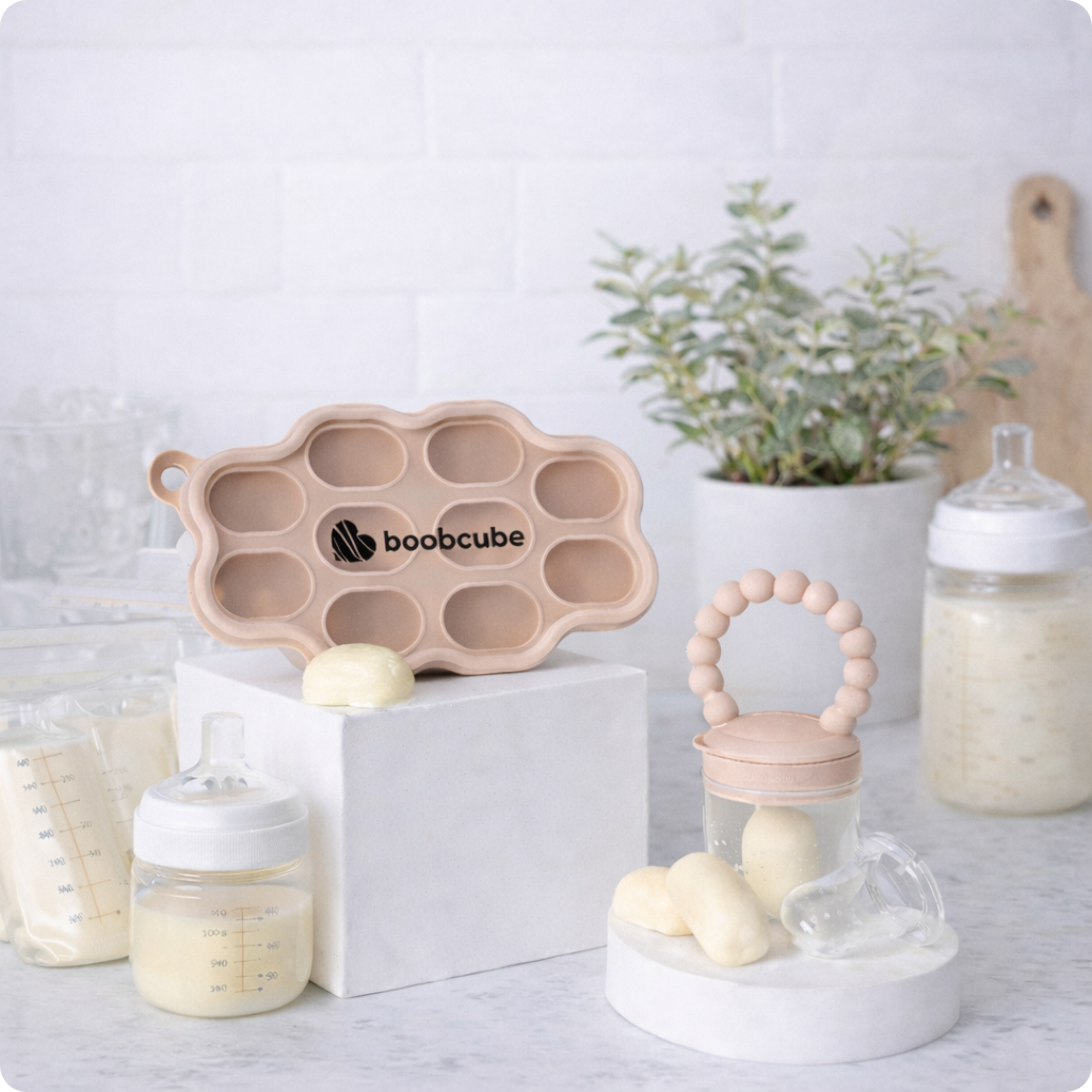 Simply fill your Boobcube Tray up with breastmilk, formula, puree baby food or fresh food or fruit and pop it in the freezer. Once frozen, pop out a Boobcube and put it in your Boobcube pop